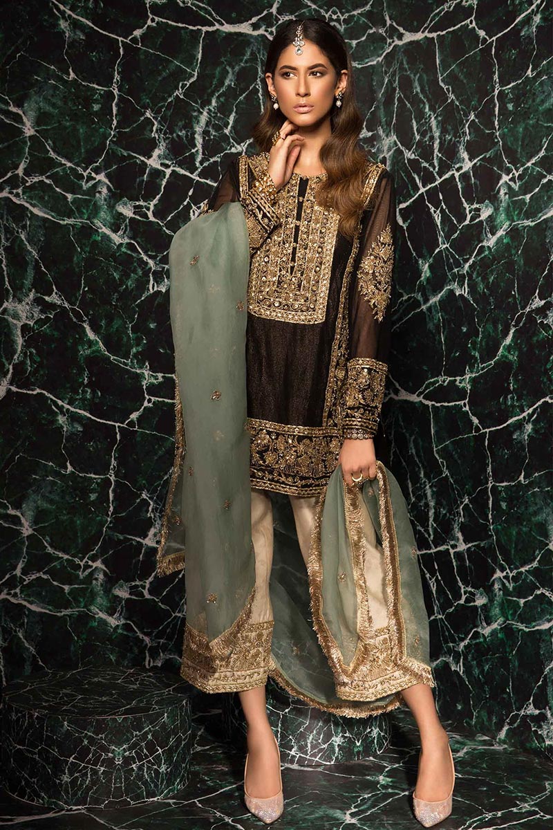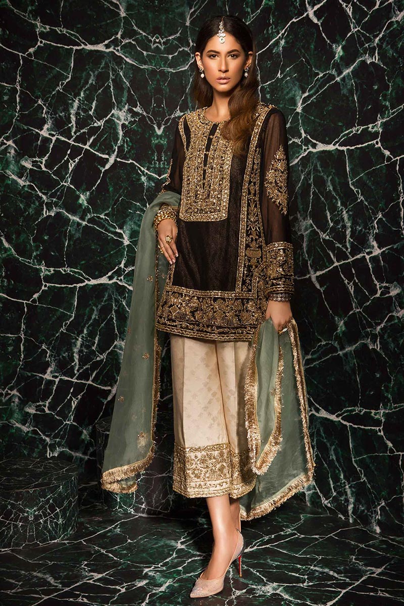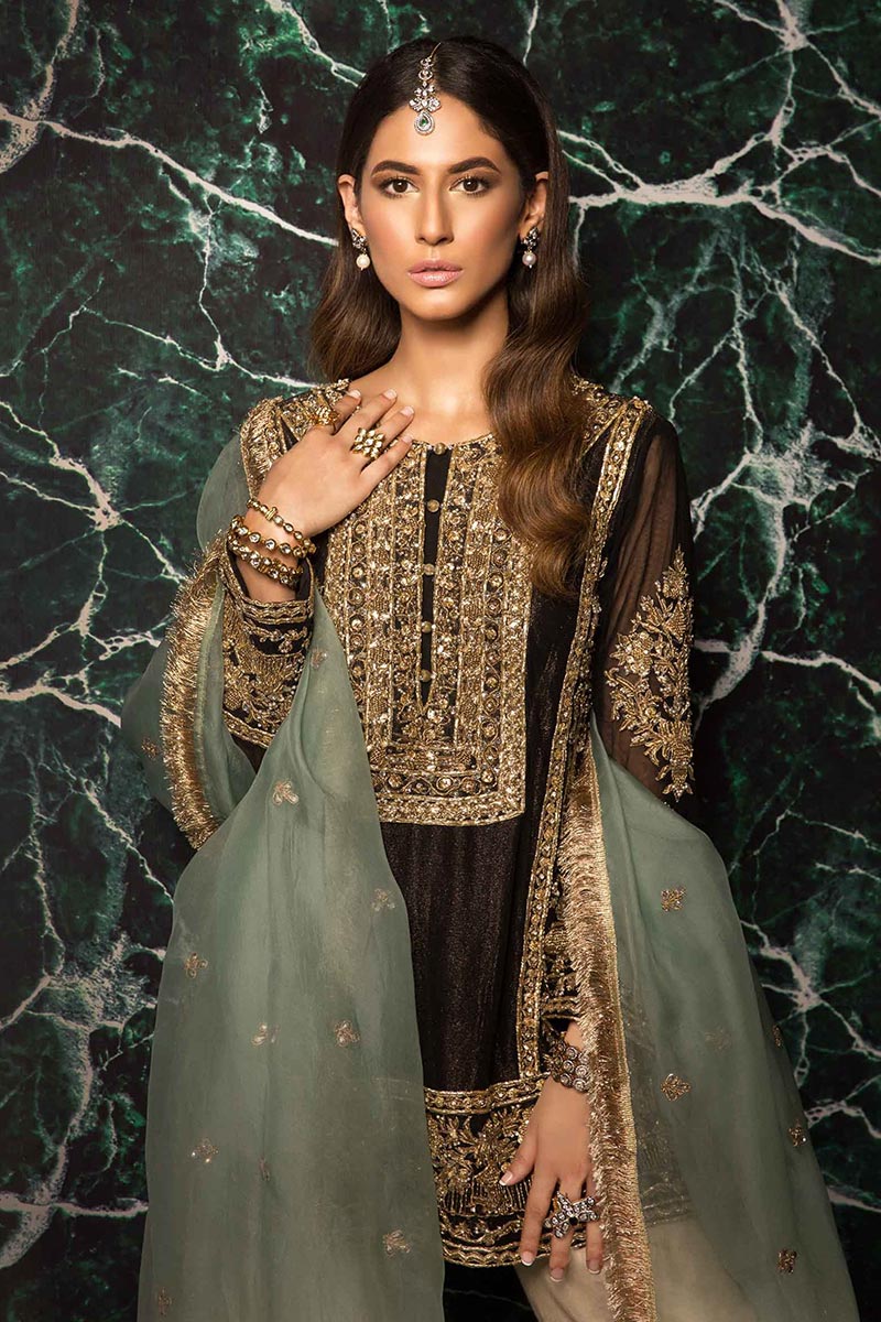 This outfit exhibits fluidity without overpowering the woman wearing it. The cut, silhouette and the meticulously handcrafted embellishments empower the wearer to command attention with every step she takes. This ensemble is entirely hand worked.
